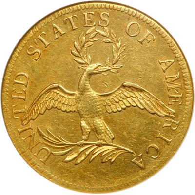Historic note: Production of 1795 capped bust eagles began September 22, with 5,583 struck between that date and March 30, 1796. Some die varieties are from reverse die with a palm branch bearing 13 leaves, while a fourth variety bears a branch with nine leaves.
