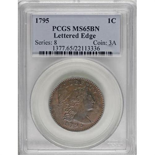 <B>1795 1C Lettered Edge MS65 Brown PCGS.</B></I> S-75, B-3, R.3. Breen Die State V. Struck from dies engraved by John Smith Gardner, at least in part, during his short-lived tenure at the fledgling first Mint. Three obverse dies and three reverse dies were employed to strike 37,000 Lettered Edge large cents dated 1795, with a resulting four die marriages. Another 501,500 cents would later be struck, but at a lighter weight and with a plain edge. Since, according to Breen, it cost the government $1.22 to produce 100 one cent pieces in 1795, President Washington verbally authorized Mint Director Elias Boudinot to reduce the weight of each planchet from 208 grains to 168 grains. As a result, collectors today have two types of cents to collect for the year 1795: Lettered Edge cents struck on thick planchets and Plain Edge cents produced on thin copper stock. Breen's research of documents in the National Archives<I> </B></I>led to the following conclusions in his <I>Complete Encyclopedia:</B></I> "Because of the need for numerous dies for dollars and half dollars early in 1795, cent coinage was interrupted until the following October. The next cent delivery was 37,000 lettered edge 1795's, December 1, from three pairs of dies, their obverses from Gardner's device punch." He explains of the 1795 Plain Edge cents: "Between December 28 and 31, 1795, the third pair of dies (Sheldon 76) went back to press, producing 45,000 cents at the new weight, delivered Jan. 1, 1796. From then through March 12 there were 456,500 more, making 501,500 in all." According to Breen's figures, that would put the ratio of 1795 Plain Edge cents to Lettered Edge cents at over 13:1. However, a survey of current population and other data paints a drastically different picture, suggesting a ratio closer to 4:1. Students of early American coinage know that recorded mintage figures are not indicative of what actually happened for a variety of reasons and do not necessarily correlate to current survival rates. Many factors come into play, including, but not limited to, meltings and coins struck with dies dated with a different year. And, of course, the population data of third party certification companies have their own flaws. However, if Breen's interpretation of mintage and delivery numbers are correct, then we would have yet another numismatic mystery on our hands. <BR> Regardless of how many Lettered Edge pieces were actually struck, numismatists today understand that Lettered Edge 1795 cents are noticeably more difficult to locate than their Plain Edge transitional counterparts. But when dealing with a coin such as the piece in this lot, conditional rarity and aesthetic qualities rise above all statistics and one becomes mesmerized by the state of preservation of a coin from such a historic period of our infant country. The early copper offered here today is, quite literally, of the highest quality obtainable. As of (11/07) PCGS has certified an amazingly low total of seven pieces in MS65 at the Brown designation and three at the MS65 Red and Brown level with none finer. Furthermore, it is highly likely that those totals are skewed by resubmissions of the same coin, but to what extent is not known. And for the early copper aficionados, the Noyes Condition Census places this piece as tied for the fourth finest known, along with the Smithsonian and the Parmelee specimens.<BR> Vibrant, velvety mint luster dances upon surfaces that are relatively free of abrasions or distractions. An indistinct strike-through error, perhaps lint, below the E in STATES is not to be confused with post-mint damage. Rather, it is an artifact of the minting process and does not impact the grade, yet it does serve as a pedigree marker for future identification. Despite the Brown designation by PCGS, tinges of mint red coloration can be observed within the protected areas, testimony that this particular coin was carefully handled and stored from the time it was struck. A review of its impressive provenance is clear proof that this example was in the safe hands of knowledgeable numismatists during the past century. EAC 62.<BR><I>Ex: Benjamin H. Collins; Dr. Thomas Hall (7/1897); Virgil Brand (9/1909); Charles R. Mathewson to Copley Coin Company; later, Dorothy Paschal (1955); Charles E. Harrison; Haig Koshkarian; Jay Parrino (1992); Superior Galleries (7/1993), lot 12; Allan Kollar, Superior Galleries (5/2005), lot 1014; American Numismatic Rarities (1/2006), lot 22.<BR>From The Madison Collection.</B></I><BR><BR><B>Coin Engraver:</B> Joseph Wright<BR><BR><b>Shipping:</b> Coins & Currency (<a target="_blank" href="http://www.heritageauctions.com/common/shipping.php">view shipping information</a>)