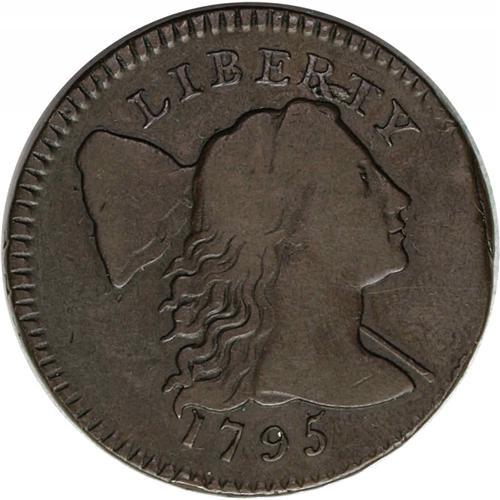 <B>1795<1C> Lettered Edge. S-73, B-1, Low R.5--Planchet Flaw--NCS. Fine Details. VG10 EAC.</B></I> The obverse has an edge imperfection at 3 o'clock, with reverse planchet roughness over AMERI, opposite the obverse flaw. Del Bland considers this example tied for 11th finest, and it is listed as the ninth best in Bill Noyes' Condition Census. An intermediate die state with a crack at UNITED but none through AMERICA. Smooth dark olive surfaces with deep steel-brown verdigris around the devices.<BR><I>Ex: Richard Hoober (4/1966); George Ramont.</B></I> Envelope Included.