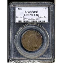 <B>1795<1C> Lettered Edge XF40 PCGS.</B></I> S-75, R.3. There is a lot of striking detail remaining on both sides of this lightly and evenly worn example. Most of the surface area is toned in chocolate-brown shades, but there is a swirl of rough-textured crimson color in the obverse field after the Y in LIBERTY. The planchet is cracked in several places (as produced), particularly on the reverse. <BR><BR><B>Important notice:</B> Heritage usually auctions material at the rate of 200-250 lots per hour. On some occasions eBay Live bid software or the Internet may not be able to keep up with the pace of the auction. We recommend placing a realistic absentee bid now as insurance to avoid disappointment. Occasionally the auctioneer may eliminate or reject an eBay Live bid, and the auctioneer may also reopen a lot after the close of the eBay live bidding (usually because we missed an audience bid), and may reject your bid even if it shows you as the winning bidder. By bidding via eBay Live, you agree that Heritage may award the lot to another bidder at its sole discretion under the circumstances described above or any other reasonable circumstances. Since eBay bids are not shown to us until we open the lot on the floor, we treat those bids just like floor bids. In most cases the floor responds before the eBay bid is presented to us, due to Internet lag time, so for consistency we have made it a policy that floor bids are always considered first over tie eBay live bids. Also please note that all Heritage lots purchased through eBay Live carry a 20% Buyer's Premium. Please make sure you read the Terms and Conditions before you bid. </span></font></tr></table></td></tr></table>