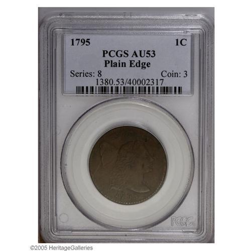 1795 1C Plain Edge AU53 PCGS. S-78, R.1. For this die 1795[1C] Plain Edge AU53 PCGS.