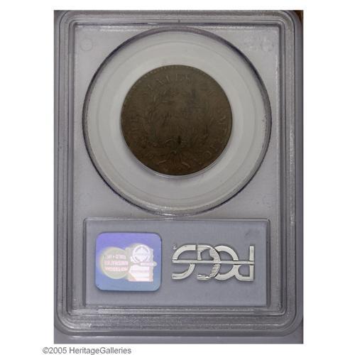 <B>1795<1C> Plain Edge AU53 PCGS.</B></I> S-78, R.1. For this die pairing, the peak of the 5 in the date just touches the bust truncation. ONE CENT is centered within the wreath, and the E in STATES is entered high. A boldly detailed walnut-brown example that is virtually free from contact. A horizontal planchet streak (as made) crosses Liberty's nose, and the N in UNITED is accompanied by a few small planchet flaws.