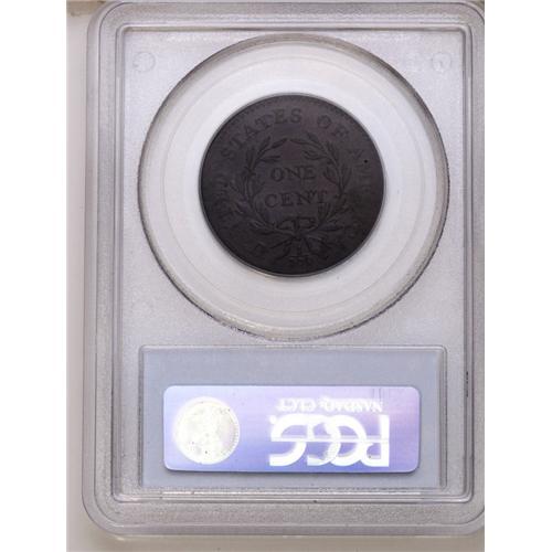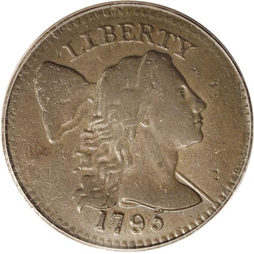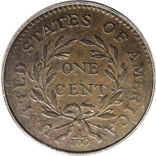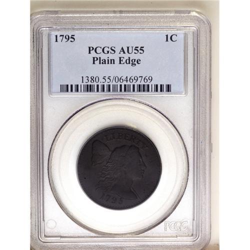 <B>1795<1C> Plain Edge AU55 PCGS.</B></I> S-78, R.1. ONE CENT is high in the wreath, as the engraver avoided placing CENT within the narrow space between the lower leaves. A medium reddish-brown cent with bold details on the wreath and portrait. A few small abrasions are noted in the right obverse field. The surfaces have only an occasional hint of granularity. A highly desirable type coin. EAC 30.