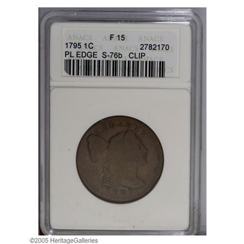 1795 1C Plain Edge--Clip--Fine 15 ANACS. S-76b, R.1. A 1795[1C] Plain Edge--Clip--Fine 15 ANACS.