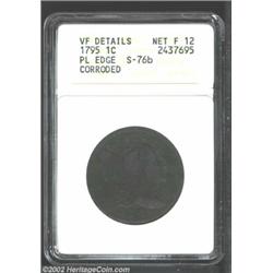 1795 1C Plain Edge--Corroded--ANACS. VF Details, Net Fine 12. S-76b, R.1. The fields are darkly tone