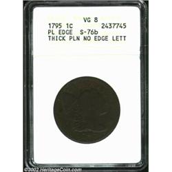 1795 1C Plain Edge, Thick Planchet VG8 ANACS. S-76b. 13.11 grams. As a variety, S-76b is the most co