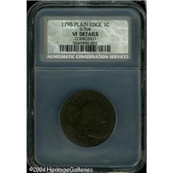 1795 1C Plain Edge VF Details, Corroded, NCS. S-76 <B>1795 1C Plain Edge VF Details, Corroded, NCS.</B></I> S-76B, R.1. A mahogany-brown representative that is undisturbed by contact aside from a couple of faint pinscratches below the fraction. Portions of AMERICA are worn, and distributed tiny pits are located primarily near the rims. <BR><BR><B>Important notice:</B> Heritage usually auctions material at the rate of 200-250 lots per hour. On some occasions eBay Live bid software or the Internet may not be able to keep up with the pace of the auction. We recommend placing a realistic absentee bid now as insurance to avoid disappointment. Occasionally the auctioneer may eliminate or reject an eBay Live bid, and the auctioneer may also reopen a lot after the close of the eBay live bidding (usually because we missed an audience bid), and may reject your bid even if it shows you as the winning bidder. By bidding via eBay Live, you agree that Heritage may award the lot to another bidder at its sole discretion under the circumstances described above or any other reasonable circumstances. Since eBay bids are not shown to us until we open the lot on the floor, we treat those bids just like floor bids. In most cases the floor responds before the eBay bid is presented to us, due to Internet lag time, so for consistency we have made it a policy that floor bids are always considered first over tie eBay live bids. Also please note that all Heritage lots purchased through eBay Live carry a 20% Buyer's Premium. Please make sure you read the Terms and Conditions before you bid. This lot is being auctioned in conjunction with a live floor auction by Heritage Galleries & Auctioneers. All final auction and invoice information will be supplied by Heritage Galleries & Auctioneers, and all other information should be considered preliminary. Lot:5035