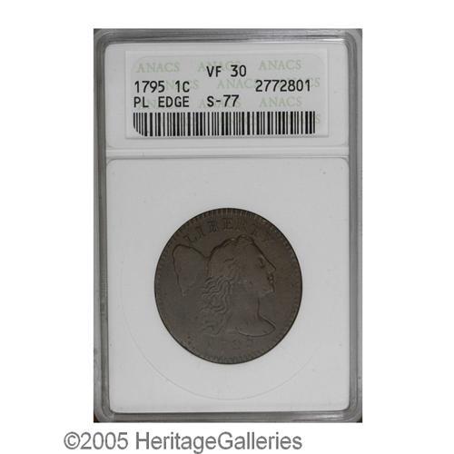 1795 1C Plain Edge VF30 ANACS. S-77, R.3. This attract 1795[1C] Plain Edge VF30 ANACS.