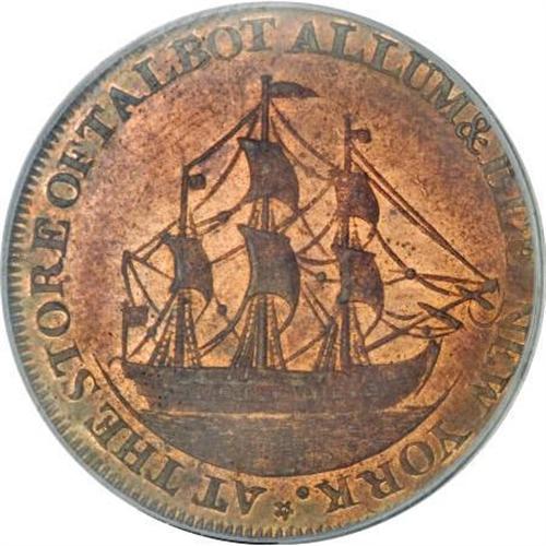 <B>1795 1C Talbot, Allum & Lee Cent MS64 Red PCGS.</B></I> Fuld-1, Breen-1035. The 1795 Talbot, Allum & Lee cent is available by the standards of Early American coinage, but among those that have survived in Mint State, most are toned brown. Red and Brown examples are rare, and full Red pieces are practically unheard of. The present piece has slightly mellowed in olive hues on the lower obverse, but orange-red is plentiful, particularly on the reverse. Listed on page 72 of the 2008 <I>Guide Book</B></I>. Population: 2 in 64, 0 finer (12/07).<BR><I>Ex: Benson II (Ira & Larry Goldberg, 2/02), lot 18, which realized $3,910.</B></I><BR><I>From The Liberty Collection of United States Colonial Coinage, Part Two.</B></I><BR><BR><b>Shipping:</b> Coins & Currency (<a target="_blank" href="http://www.heritageauctions.com/common/shipping.php">view shipping information</a>)