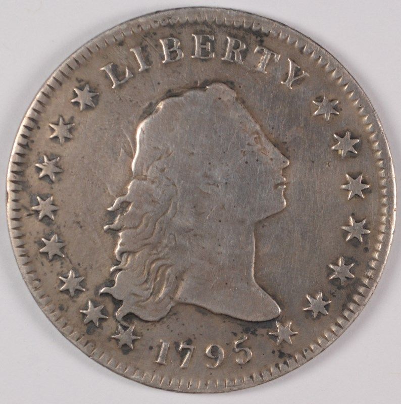 1795 2 LEAF FLOWING HAIR DOLLAR, VF CLEANED AT ONE TIME, NICE LOOKING COIN!!