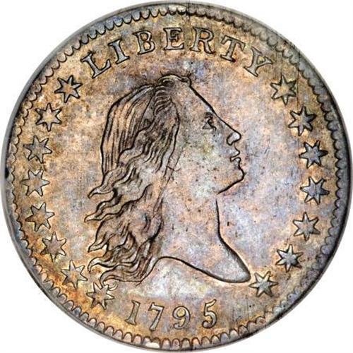 <B>1795 50C 2 Leaves AU53 NGC.</B></I> O-131, High R.4. On this variety, the first star pierces the open curl, the last A in AMERICA is recut on the right side, there is a die crack from the edge to the right side of the first A in the same word, another from the edge above C through A to the top of and joining UNIT, and a leaf touches the left foot of the M.<BR> In a December 23, 1997 <I>Numismatic News</B></I> article titled "1795 Half Dollar Speaks Volumes of U.S. Mint History," Paul Green writes: "The 1795 half dollar is something of a poster child for the way the mint produced coins at that time. There was no serious concern about slight design differences, and a recent count of varieties for that date put the total above 30."<BR> Whispers of blue-gray, gold-brown, and lavender visit both sides of this AU53 example. Traces of luster rest in the recessed areas, the design elements exhibit sharp definition and are well centered on the planchet, and the dentilation is relatively strong. The surfaces are quite clean, and some light adjustment marks are visible on the reverse. Overall, a very attractive early half.<BR><BR><B>Coin Engraver:</B> Robert Scot<BR><BR><b>Shipping:</b> Coins & Currency (<a target="_blank" href="http://www.heritageauctions.com/common/shipping.php">view shipping information</a>)