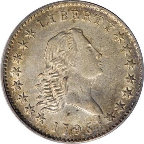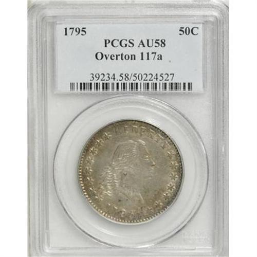 <B>1795 50C 2 Leaves AU58 PCGS.</B></I> O-117a, R.4. Most easily identifiable by the "defect line" between the right arm and base of the Y in LIBERTY. Overton also stated that the field was unfinished below the chin, the appearance due to heavy clash marks. The reverse has 9 berries left and 8 right, and this is the only such division with four berries under the left (right facing) wing. Also, the CA in AMERICA is recut, and the lower leaf is connected to the last A. Some clash marks are visible on the upper obverse.<BR> Silver-gray surfaces display whispers of olive-green, sky-blue, and mauve. The design features are well impressed, as evidenced by sharp definition on Liberty's hair and the eagle's plumage, and the dentils are quite strong on both sides. A few light marks do not disturb. <BR> Haseltine-11; Beistle 11a-P; Overton-40; Hilt 10-E; PCGS# 6052, 39234; Encyclopedia-4553.<BR><I>Ex: 2007 FUN Auction (Heritage, 1/2007), lot 952.<BR>From The Westmoreland County Collection of Early Bust Halves, 1794-1807.</B></I><BR><BR><B>Coin Engraver:</B> Robert Scot<BR><BR><b>Shipping:</b> Coins & Currency (<a target="_blank" href="http://www.heritageauctions.com/common/shipping.php">view shipping information</a>)