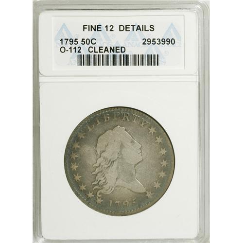 <B>1795 50C 2 Leaves--Cleaned--ANACS. Fine 12 Details.</B></I> O-112. NGC Census: (163/990). PCGS Population (141/538). Mintage: 299,680. Numismedia Wsl. Price: $1,350. (#6052)<BR><BR><b>Shipping:</b> Coins & Currency (<a target="_blank" href="http://www.heritageauctions.com/common/shipping.php">view shipping information</a>)