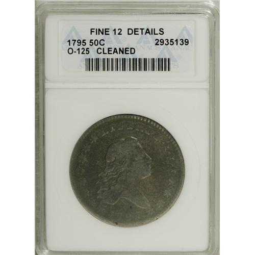<B>1795 50C 2 Leaves--Cleaned--ANACS. Fine 12 Details.</B></I> O-125, High R.4. Significantly worn and slightly glossy. The fields and devices have retoned blue-brown with speckles of olive-green on each side.<BR><I>From The Edward Sacks Collection.</B></I><BR><BR><b>Shipping:</b> Coins & Currency (<a target="_blank" href="http://www.heritageauctions.com/common/shipping.php">view shipping information</a>)