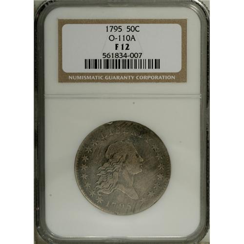 <B>1795 50C 2 Leaves Fine 12 NGC.</B></I> O-110a, R.4. Gold-gray and slate-gray patina covers the moderately worn surfaces. Several rim bruises and field abrasions affect the obverse.<BR><BR><b>Shipping:</b> Coin/Currency (<a target="_blank" href="http://www.heritageauctions.com/common/shipping.php">view shipping information</a>)