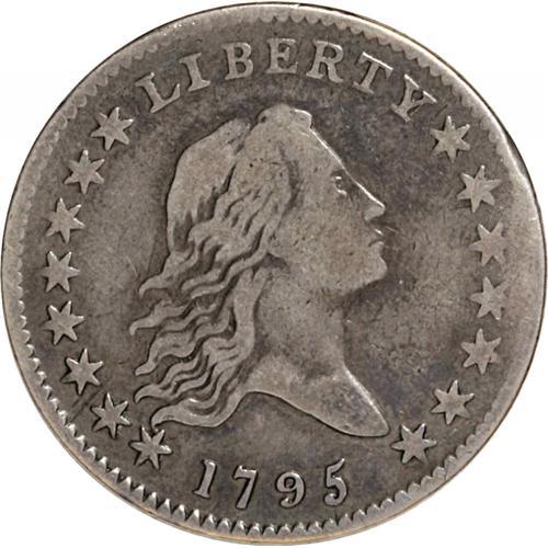 <B>1795<50C> 2 Leaves. O-117, R.4. Fine 15 NGC.</B></I> Overton's "defect line" between the right arm and base of Y in LIBERTY identifies the die marriage. Overton stated that the field was unfinished below the chin; however, it may be the case that the rough lines he examined are actually clash marks from the eagle's wing. See O-121 below for a similar appearance. An early die state without any evidence of the crack from 5 o'clock to the bust. Although the present obverse die was only used for O-117, the reverse proved more hardy and was eventually paired with three other obverse dies. Deep gunmetal-gray in color, lighter on the major devices than in the fields. Minor marks are near the third star and the nose; the reverse shows no relevant marks but the center exhibits greater wear than the remainder of the piece.<BR><I>Ex: Paul Padget (7/28/1981).</B></I> Envelope Included.