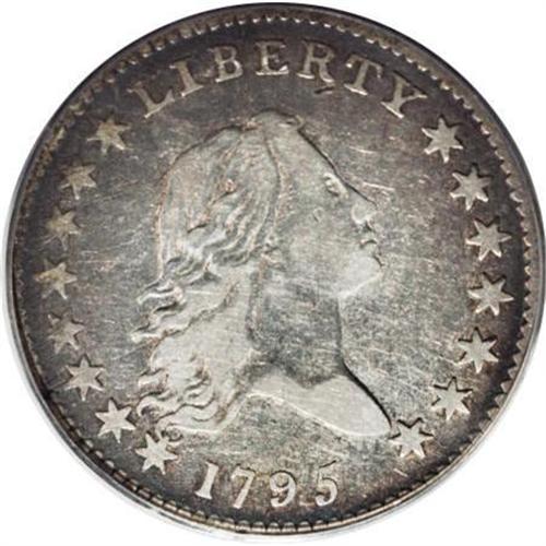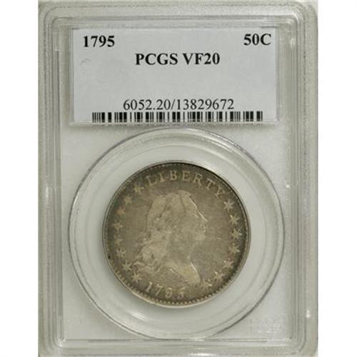 <B>1795 50C 2 Leaves VF20 PCGS.</B></I> O-129, R.5. In 1795, two denominations, the half dollar and the five dollar, both show an overpunching of STATES over STATED. Hilt states that the half eagles were produced between July 31 and August 11. This date range is also consistent with the estimated date of production for the Small Head half dollars. The curious dissimilarity between the two denominations is that the fives were engraved by Robert Scot while the Small Head half dollars were done by John Smith Gardner, which leads one to the conclusion that two engravers made the same mispunching error at about the same time.<BR> In addition to the S over D mispunching, this variety is distinguishable by the oblong die lump between the D and S. There is also a light crack from the border over A to the left side of M.<BR> Light silver surfaces with wispy gold color and deeper iridescent toning along the borders. Minor adjustment marks can be seen at the left side of the obverse. <BR> Haseltine-13; Beistle 13-S; Overton-61; Hilt 13-J; PCGS #6052; <I>Encyclopedia</B></I>-4557.<BR><I>Ex: Harry Laibstain (6/1999).<BR>From The Westmoreland County Collection of Early Bust Halves, Part Two.</B></I><BR><BR><b>Shipping:</b> Coins & Currency (<a target="_blank" href="http://www.heritageauctions.com/common/shipping.php">view shipping information</a>)
