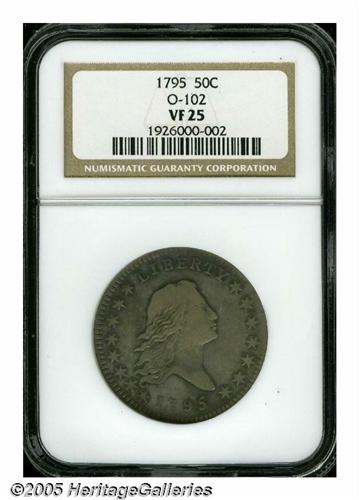1795 50C 2 Leaves VF25 NGC. O-102, R.5. Deep ches