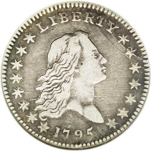 <B>1795<50C> 2 Leaves VF35 NGC.</B></I> O-110a, R.3. This variety displays raised lines between the curls above star 2, and the reverse has two berries under each wing, all on the inside, with the top berry under the left (right facing) wing the only one that has a stem. This late-state obverse has two die cracks, one that passes through R, into the field below TY, through star 11, and to the edge. A second crack runs from the top of T through the base of Y, through stars 9 and 10 to the milling. This Choice VF specimen displays nicely centered design features and bold dentilation on both sides. Liberty's hair shows strong detail, and most of the eagle's wing and tail feathers are clear. Light silver-gray surfaces take on slightly deeper gray-blue hues around the borders. A few minor contact and slide marks are noted on each side, and light to moderate file adjustments are visible on the lower obverse. This is a very pleasing mid-grade early half dollar.