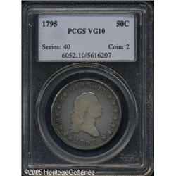 <B>1795 50C 2 Leaves VG10 PCGS.</B></I> O-126a, R.4. All stars and legends are clear. Lavender and dove-gray colors consume the centers, while the margins offer dusky russet patina. Some wispy slide marks from circulation, as expected, however, there are no distracting abrasions. Lot:6905