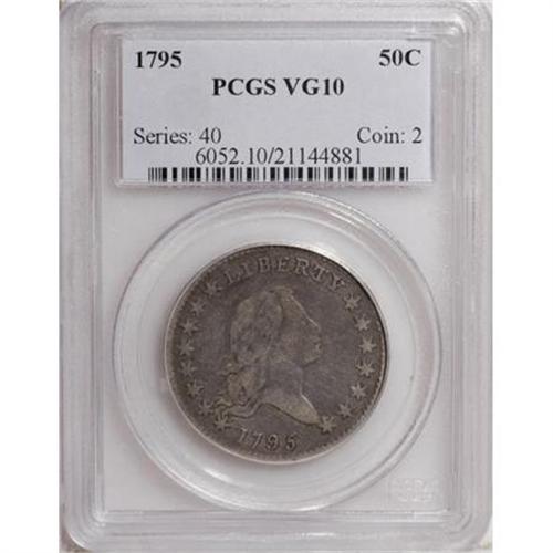 <B>1795 50C 2 Leaves VG10 PCGS.</B></I> O-131, High R.4. Star 1 pierces an open curl on this variety, one of the several R.4 varieties more frequently seen for the year. The light-gray surfaces show no mentionable impairments, just extensive wear. An appealing coin for the grade and type.<BR><I>From The Arnold & Harriet Collection.</B></I><BR><BR><B>Coin Engraver:</B> Robert Scot<BR><BR><b>Shipping:</b> Coins & Currency (<a target="_blank" href="http://www.heritageauctions.com/common/shipping.php">view shipping information</a>\)