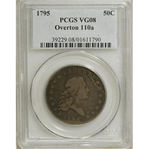 <B>1795 50C 2 Leaves VG8 PCGS.</B></I> O-110a, R.3. The obverse has parallel die cracks at the upper right. One curves through TY to stars 9 and 10 while the other curves through R to stars 10 and 11. The reverse has a faint die crack from the lower border to the E of UNITED. The pattern of obverse die cracks provides a dramatic and exceptional appearance that will appeal to the advanced collector of this early coinage series.<BR> This piece has lovely medium gray color with hints of pale brown and smooth surfaces. Light reverse adjustment marks are confined to the space above the legend.<BR><I>Ex: Globus Collection (Stack's, 12/1999), lot 1694; Alpine Numismatics (2/2004).<BR>From The Westmoreland County Collection of Early Bust Halves, Part Two.</B></I><BR><BR><b>Shipping:</b> Coins & Currency (<a target="_blank" href="http://www.heritageauctions.com/common/shipping.php">view shipping information</a>)