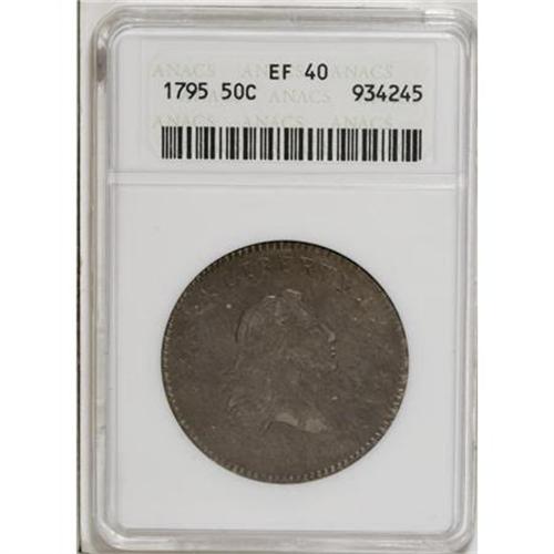 <B>1795 50C 2 Leaves XF40 ANACS.</B></I> O-125, R.4. Star 13 is beneath the bust tip, and a berry is present beneath the E in UNITED. These two pick-up points identify the scarce O-125 marriage. A richly defined deep gunmetal-gray representative with unabraded surfaces. Misaligned dies cause softness on the date and STATES OF. Struck from clashed dies.<BR><I>From The Casa Becca del Norté Collection.</B></I><BR><BR><B>Coin Engraver:</B> Robert Scot<BR><BR><b>Shipping:</b> Coins & Currency (<a target="_blank" href="http://www.heritageauctions.com/common/shipping.php">view shipping information</a>)