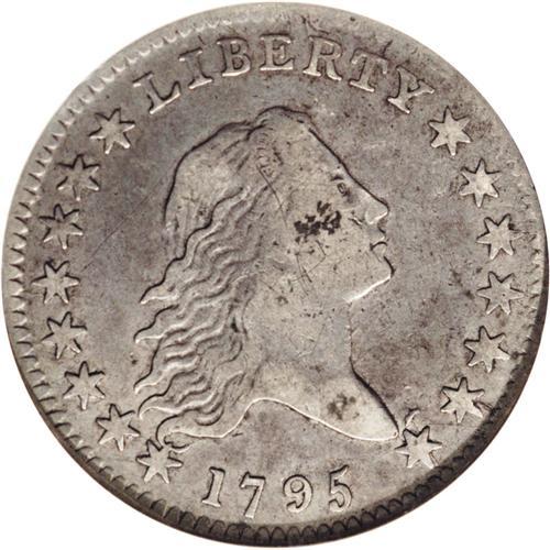 <B>1795<50C> 2 Leaves XF40 NGC.</B></I> O-119, R.4. The die lump above the final star is generally diagnostic for Overton-119, although the variety described by Overton as O-118 shares the same obverse die. However, O-118 is currently not known to exist. This richly detailed cream-gray Flowing Hair half has a few light marks on each side, and a couple of freckles of charcoal-toned debris are noted on the cheekbone.