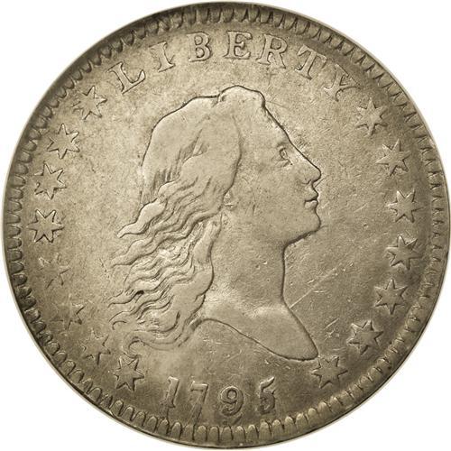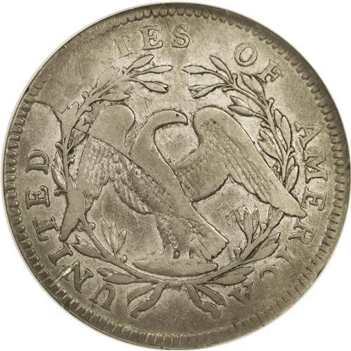 <B>1795<50C> 3 Leaves XF40 NGC.</B></I> O-111, High R.4. The date is dramatically recut on this variety, with the first date entered much lower into the die than the second. But this Overton variety is even more famous for having three leaves under each wing of the eagle, in comparison to all other 1795 reverse dies which have only two leaves under each wing. This pleasing specimen has light silver-gray centers with slightly darker borders. On this example, there is a small die crack from the leftmost member of the left three-leaved cluster up to the vertex of the eagle's wing. A heavy die break from the center of the eagle's breast to the rim at the first S in STATES, found on all examples, is especially so on this piece, so that two different planes exist: The top of the left wing and the eagle's upper half are worn much more than the bottom. STA and CA on the reverse are soft at their tops, the apparent result of die misalignment. Despite 20 points of wear, muted luster clings to the pristine and unimpaired surfaces of this popular <I>Guide Book</B></I> variety.