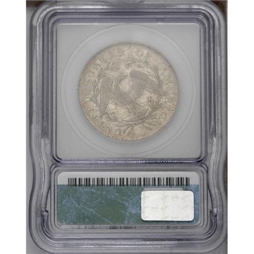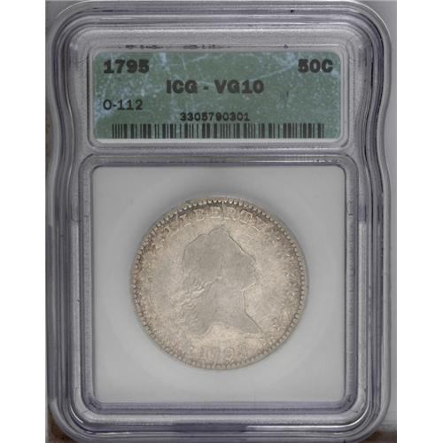 <B>1795/1795 50C VG10 ICG.</B></I> O-112, R.4. The date is broadly recut on this important Overton variety, which receives a separate <I>Guide Book</B></I> listing. Slate-gray in color with a slender band of russet-brown toning along the obverse margin. Although worn, this piece displays some hair and feather definition.<BR><I>From The Diamond Collection, Part Two.</B></I>