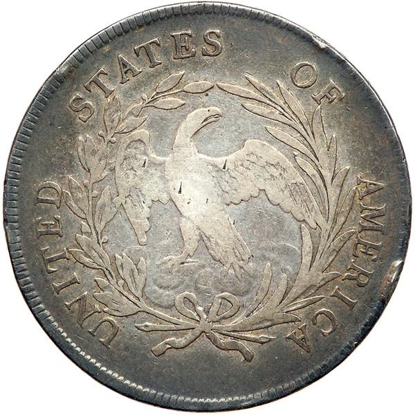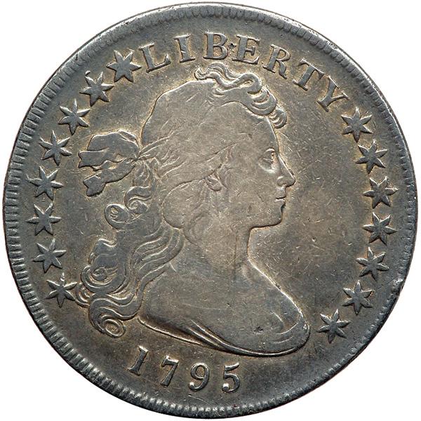 1795 B-14, BB-51 Rarity 2. Draped Bust. Small Eagle Reverse. Sharpness of VG. Toned and cleaned years ago. An injury-free example that is suitable for a U.S. Type Set to represent this short-lived style.