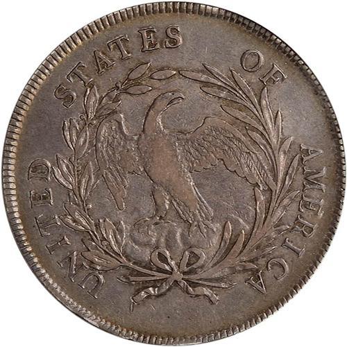Mintage for the date is 42,738 but unknown for this variety, the Off-Centered Bust or Bust Set Left as it is often called. This collector coin is grey with even wear and none of the damage that often accompanies these early large coins. Bid is currently $7000 and this coin is listed in CU at $10,000.