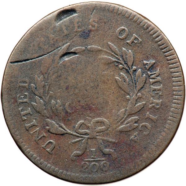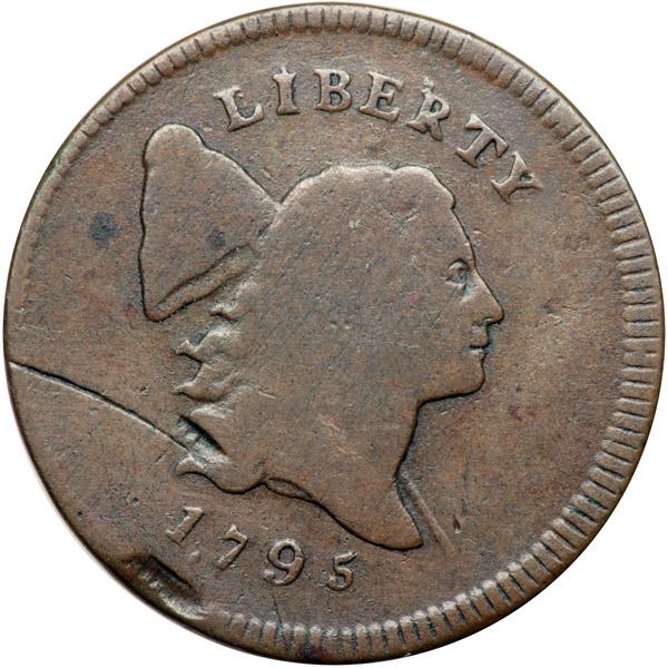 1795 C-4 R3 Punctuated Date, Plain Edge G6. Glossy light to medium chocolate brown. There are a few faint hairline scratches hidden under the attractive glossy toning, but overall this piece is near choice for the grade from a post-minting perspective. However, there is a stray planchet cutter impression at opposing places on both sides plus a couple obvious indents in the planchet, one on the obverse and two on the reverse. These marks are consistent with a piece that was struck more than once or struck on a planchet that was cut down from a spoiled cent, but I can find no definitive evidence of either event. LDS, Manley state 2.0. The bulge in the field before the portrait is clear and the central part of the reverse is weakly struck. The date is clear and the comma between the 1 & 7 is visible. Weight 76.5 grains. Davy #95.4.8.