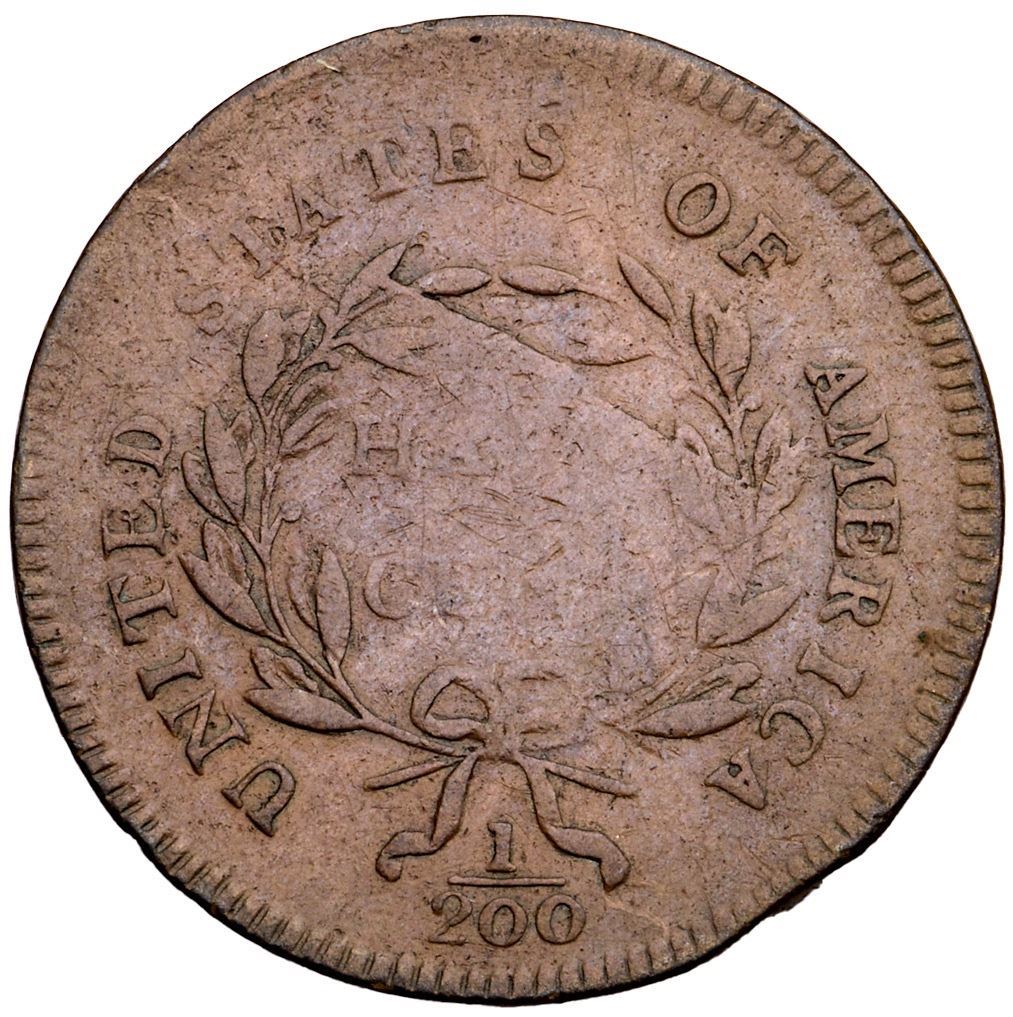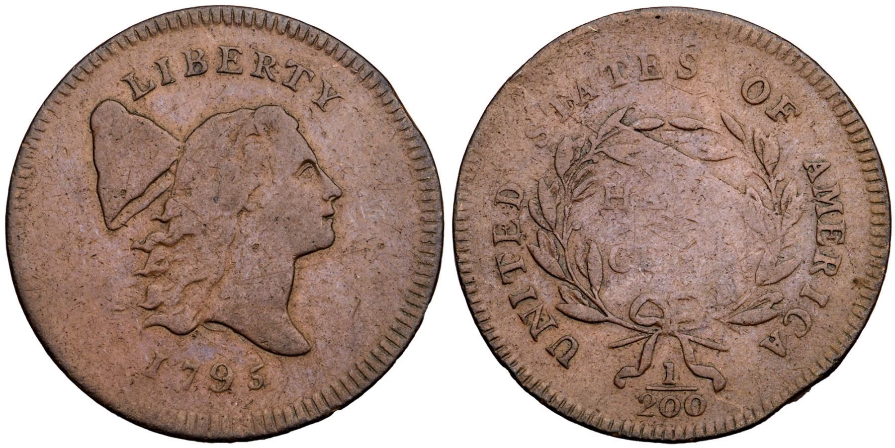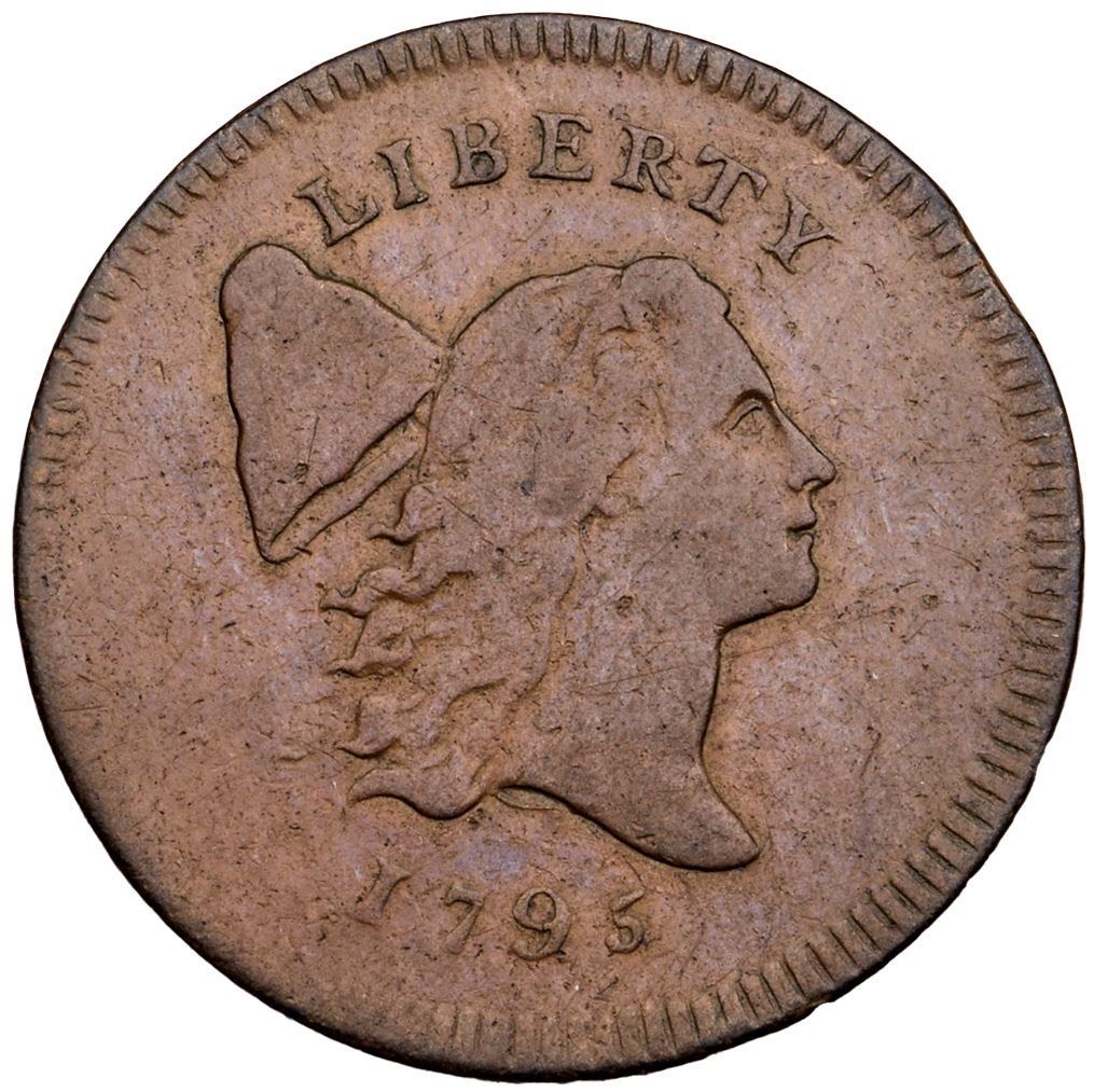 1795 C-5a R-3 No Pole VF20Glossy choice light brown. There are a few wispy pin scratches on the portrait and fields that blend in very well with the toning, and there is a tiny planchet clip at 1:30. Choice toning and surfaces, great eye appeal. EDS, Manley state 1.0.Certificate Number: Pedigree: Ex; Tom Reynolds 8/23/2002 - Bob Kebler Collection