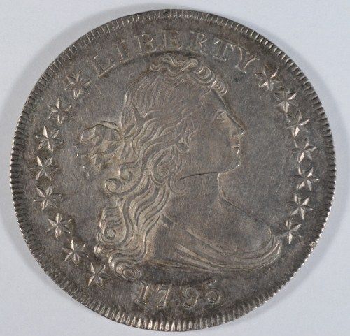 1795 DRAPED BUST DOLLAR AU58, VERY MINOR MARK ON OBV, VERY SHARP STRIKE! NICE!