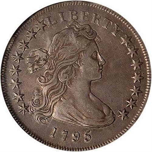 Late in the year 1795 the draped bust obverse with small eagle reverse was adopted for silver dollar coinage. Artist Gilbert Stuart, contemplating the Flowing Hair motif, remarked in 1795 that "Liberty on the other coins had run mad. We will bind it up an