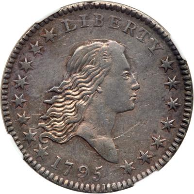 1795 Flowing Hair Half Dollar. NGC graded AU-58 O-110. Nice golden toning. In a new NGC 4 prong holder. Pop 1; the finest graded at NGC for the variety.