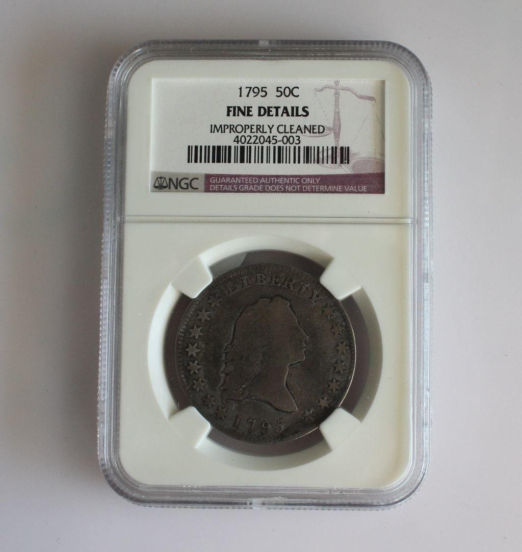 A really pleasing example of the 1795 Flowing Hair half-dollar. Like most all of these coins grading service named coin as cleaned, has a couple of die grease marks. however this coin exhibits no fine hairlines or heavy scratches, has really pleasing color and really strong details for the grade of fine. Anyone would be proud to own this impressive and scarce US Type coin.