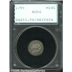 <B>1795 H10C AU50 PCGS.</B></I> V-4, LM-10, R.3. This variety is easily confirmed by the heavy rim break above TY in LIBERTY, extending to star 9. Medium golden-russet toning around the devices and borders with silver-gray accents elsewhere. Numerous adjustment marks are confined to the reverse side. An ideal type coin selection that is housed in an early PCGS holder.