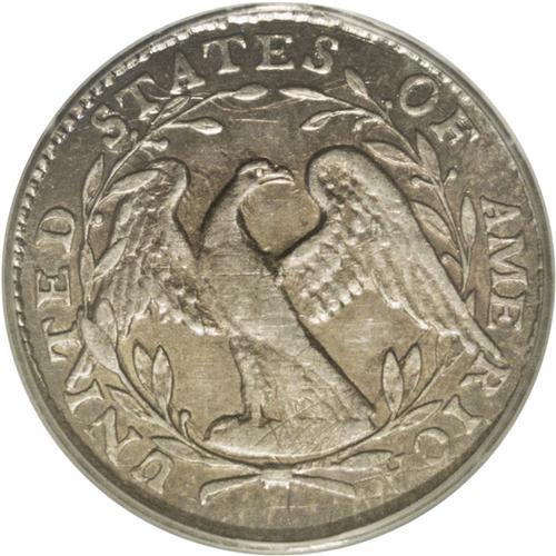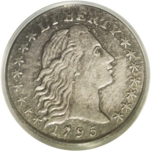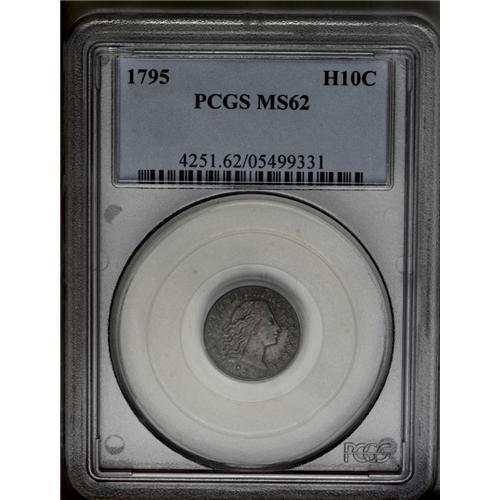 <B>1795<H10C> MS62 PCGS.</B></I> V-6, LM-9, R.4. Star 1 has points between curls 2 and 3, the L in LIBERTY is low, and IB are far apart. The 7 in the date is defective. The reverse has four berries left, five right, with one inner berry and no berries under the right (facing) wing. Bold, doubled clash marks are seen on the reverse, through the top leaves and STA, from the bust truncation on the obverse. Clash marks show on the obverse below the bust. There are a few light adjustment marks through the center reverse, and a small cluster of light, old pinscratches through the eagle's tail feathers, the cloud on which he sits, and the bowknot below. Die cracks run from the Y to the nose, down through the neck and the 7 in the date, to the rim. The surfaces are smoke-gray, with silver-gray highpoints. A charming and affordable mid-Mint State example.
