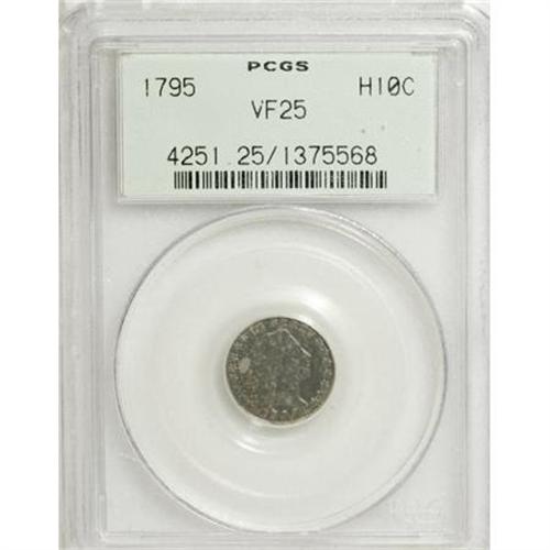 <B>1795 H10C VF25 PCGS.</B></I> V-5, LM-8, R.3. The die crack from Liberty's nose through the Y helps identify the Valentine variety. A nicely detailed example with a cloudy powder-blue obverse and a charcoal-gray reverse. Flowing Hair half dimes were only struck in 1794 and 1795. Encased in an old green label holder.<BR><I>From The Casa Becca del Norté Collection.</B></I><BR><BR><B>Coin Engraver:</B> Robert Scot<BR><BR><b>Shipping:</b> Coins & Currency (<a target="_blank" href="http://www.heritageauctions.com/common/shipping.php">view shipping information</a>)