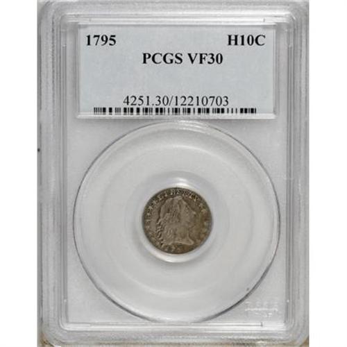 <B>1795 H10C VF30 PCGS.</B></I> V-5, LM-8, R.3. An early die state with the crack only seen from the rim through the Y of LIBERTY to the bridge of Liberty's nose. One of the more frequently seen varieties from this highly collectible year and occasionally even found in Uncirculated grades. This piece has even gray-olive patina. The only marks of note are a couple of tiny digs in the reverse field. Struck from misaligned dies, with faint definition on the lower obverse and upper reverse. <BR><BR><B>Coin Engraver:</B> Robert Scot<BR><BR><b>Shipping:</b> Coins & Currency (<a target="_blank" href="http://www.heritageauctions.com/common/shipping.php">view shipping information</a>)