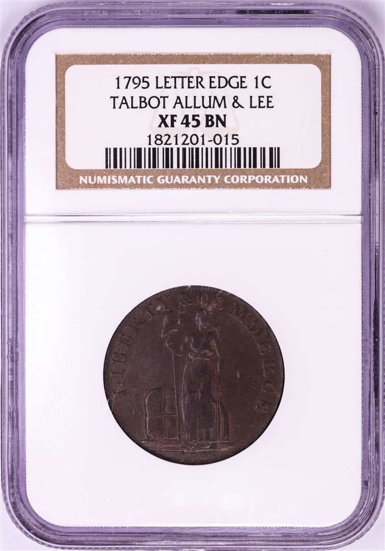 One 1795 Letter Edge Talbot Allum & Lee Colonial Cent Coin NGC XF45BN. NGC Certified.