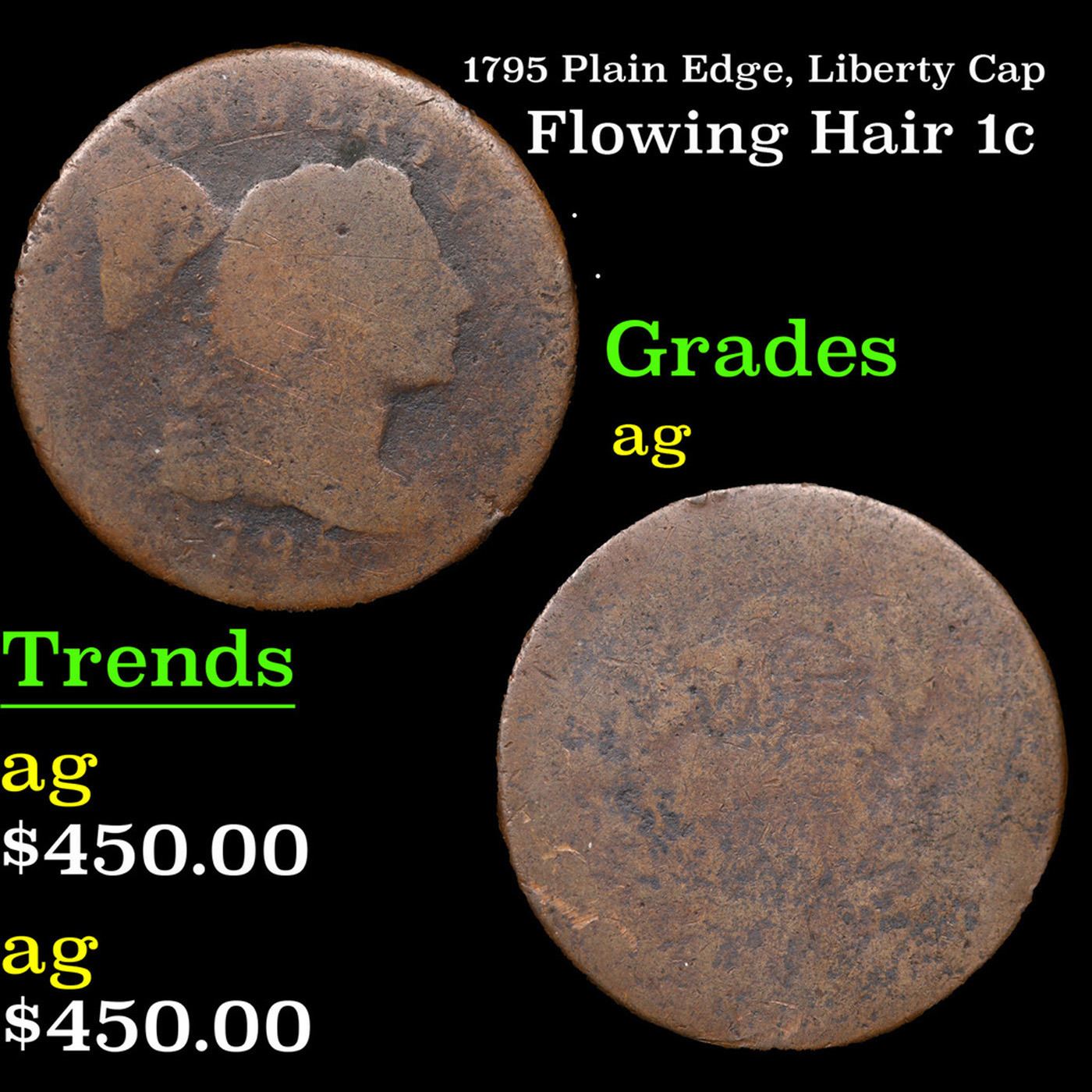 1795 Plain Edge, Liberty Cap Flowing Hair large cent 1c Grades ag.