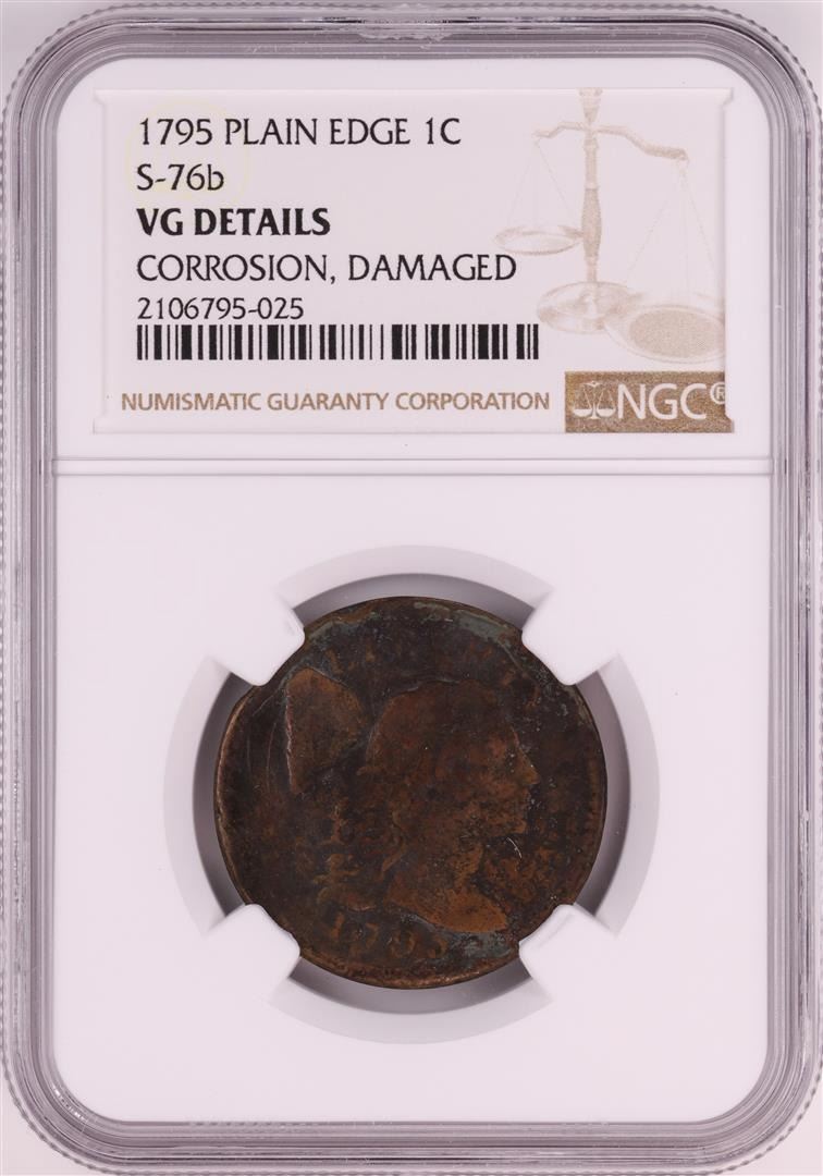 One 1795 Plain Edge S-76b Liberty Cap Large Cent Coin NGC VG Details. NGC Certified.