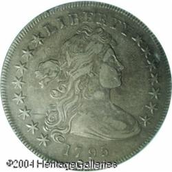 1795 S$1 Draped Bust, Centered--XF Details, Reverse <B>1795 S$1 Draped Bust, Centered--XF Details, Reverse Repaired, NCS.</B></I> B-15, BB-52. This is a rather attractive coin despite its impairment. Both sides show rich charcoal-gray toning with subtle gold undertones. There are a few scattered abrasions on the obverse, none of which are individually distracting, small area of smoothing is seen at the top of the reverse, and some adjustment marks are also especially prevalent on that side. The sharply struck, adequately detailed surfaces are expertly centered within their denticled borders. A suitable circulated type coin. <BR><BR><B>Important notice:</B> Heritage usually auctions material at the rate of 200-250 lots per hour. On some occasions eBay Live bid software or the Internet may not be able to keep up with the pace of the auction. We recommend placing a realistic absentee bid now as insurance to avoid disappointment. Occasionally the auctioneer may eliminate or reject an eBay Live bid, and the auctioneer may also reopen a lot after the close of the eBay live bidding (usually because we missed an audience bid), and may reject your bid even if it shows you as the winning bidder. By bidding via eBay Live, you agree that Heritage may award the lot to another bidder at its sole discretion under the circumstances described above or any other reasonable circumstances. Since eBay bids are not shown to us until we open the lot on the floor, we treat those bids just like floor bids. In most cases the floor responds before the eBay bid is presented to us, due to Internet lag time, so for consistency we have made it a policy that floor bids are always considered first over tie eBay live bids. Also please note that all Heritage lots purchased through eBay Live carry a 20% Buyer's Premium. Please make sure you read the Terms and Conditions before you bid. This lot is being auctioned in conjunction with a live floor auction by Heritage Galleries & Auctioneers. All final auction and invoice information will be supplied by Heritage Galleries & Auctioneers, and all other information should be considered preliminary. Lot:6360