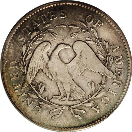 <B>1795 S$1 Flowing Hair, Silver Plug Fine 15 PCGS.</B></I> B-1, BB-21, R.1, probably R.5 with a silver plug. The silver plug is highly visible on the obverse, but no evidence is noted on the reverse. A pleasing light gray piece with vibrant blue toning at the left obverse border. Faint hairlines are visible on each side, especially right of the date on the obverse and at the center of the reverse. There is no doubt that these were considered when the final grade was determined. Although the B-1 variety is the second most plentiful 1795 die marriage, it is quite rare with a Mint inserted silver plug. In fact, all such pieces are elusive, regardless of variety. We believe that only 35 or 40 examples of this die marriage exist with a silver plug, and possibly only 200 in total.<BR><BR><b>Shipping:</b> Coin/Currency (<a target="_blank" href="http://www.heritageauctions.com/common/shipping.php">view shipping information</a>)