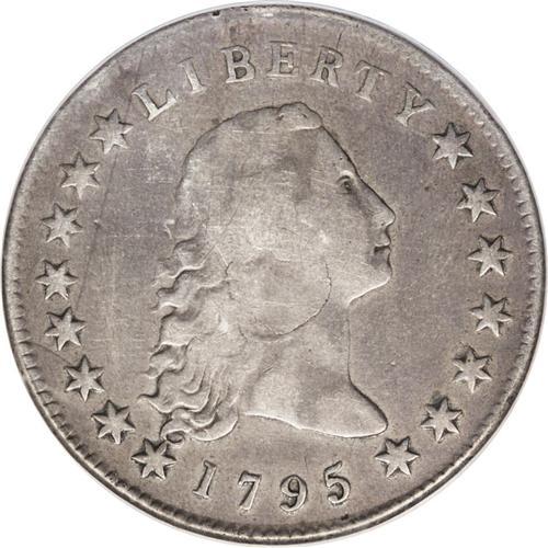 <B>1795 S$1 Flowing Hair, Three Leaves, Silver Plug--Repaired, Improperly Cleaned, NCS. VF Details.</B></I> B-7, BB-18, R.3. The plug is evident as a faint irregular circular line at the obverse center. Bolender-7 appears to be the variety most often found with a silver plug, which were added to the planchet by mint workers prior to the strike. Likely, mint policy changed shortly later, and underweight planchets were melted instead of brought up to standard weight with a silver plug. The present blue-gray example is dull from a cleaning, but no repair is readily evident. The L and B in LIBERTY exhibit slight granularity.<BR><BR><b>Shipping:</b> Coin/Currency (<a target="_blank" href="http://www.heritageauctions.com/common/shipping.php">view shipping information</a>)