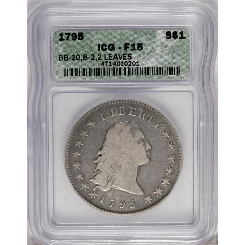 1795 S$1 Flowing Hair, Two Leaves Fine 15 ICG. B-2, BB