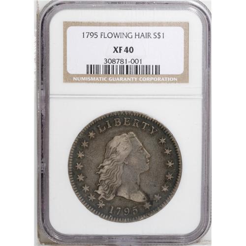 1795 S$1 Flowing Hair, Two Leaves XF40 NGC. B-9, BB-13